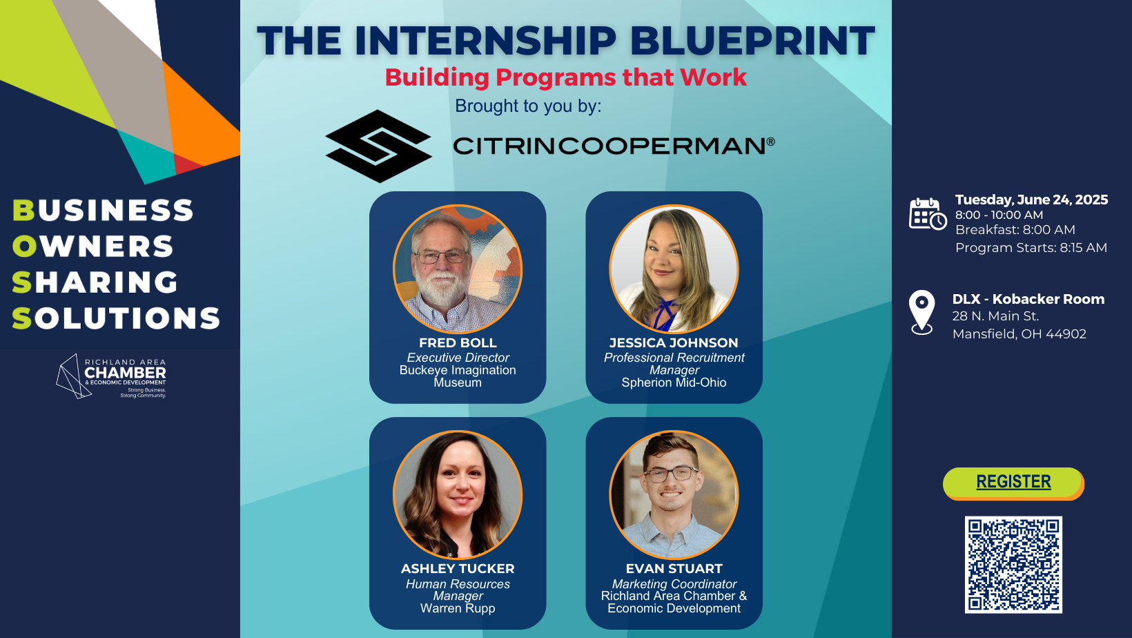 5+ mon, 1+ week ago (244+ words) Get 12% OFF any Source Membership when you purchase by the end of June! Use code BIRTHDAY at checkout. MANSFIELD " The Richland Area Chamber & Economic Development will host its next BOSS session, "The Internship Blueprint: Building Programs That Work," on Tuesday, June 24. This program is designed for business owners, managers, and HR professionals who want to develop or improve internship offerings that strengthen talent pipelines and provide valuable student experiences. Participants will hear candid insight from local leaders who have created successful internship models, learn practical steps for structuring meaningful roles, and explore ways internships can enhance long-term workforce strategies. " Fred Boll " Executive Director, Buckeye Imagination Museum" Jessica Johnson " Professional Recruitment Manager, Spherion Mid-Ohio" Ashley Tucker " Human Resources Manager, Warren Rupp" Evan Stuart " Marketing Coordinator, Richland Area Chamber & Economic Development This BOSS program is presented by Citrin Cooperman. Date: Tuesday, June…...